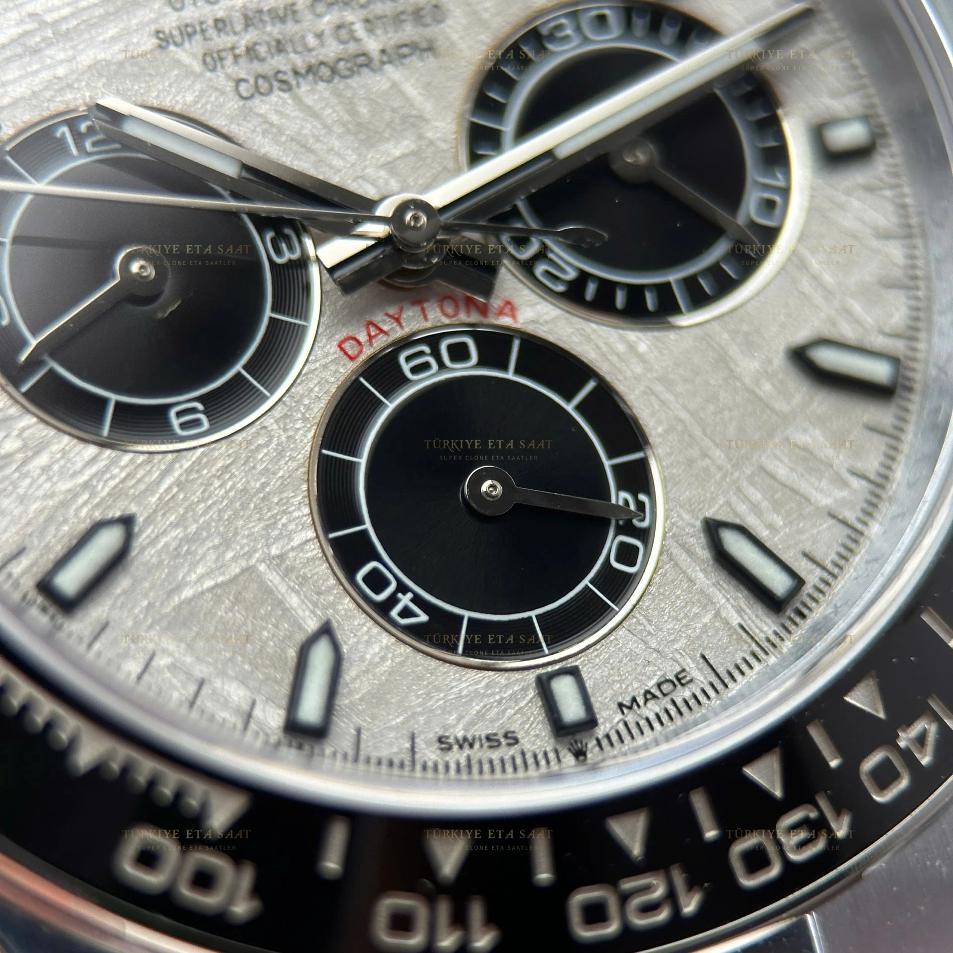 Rolex Daytona 126515 Meteorite, meteor taşından kadranı, Oysterflex kayışı ve 4130 Clone mekanizmasıyla üst düzey saatçilik deneyimini sunar.