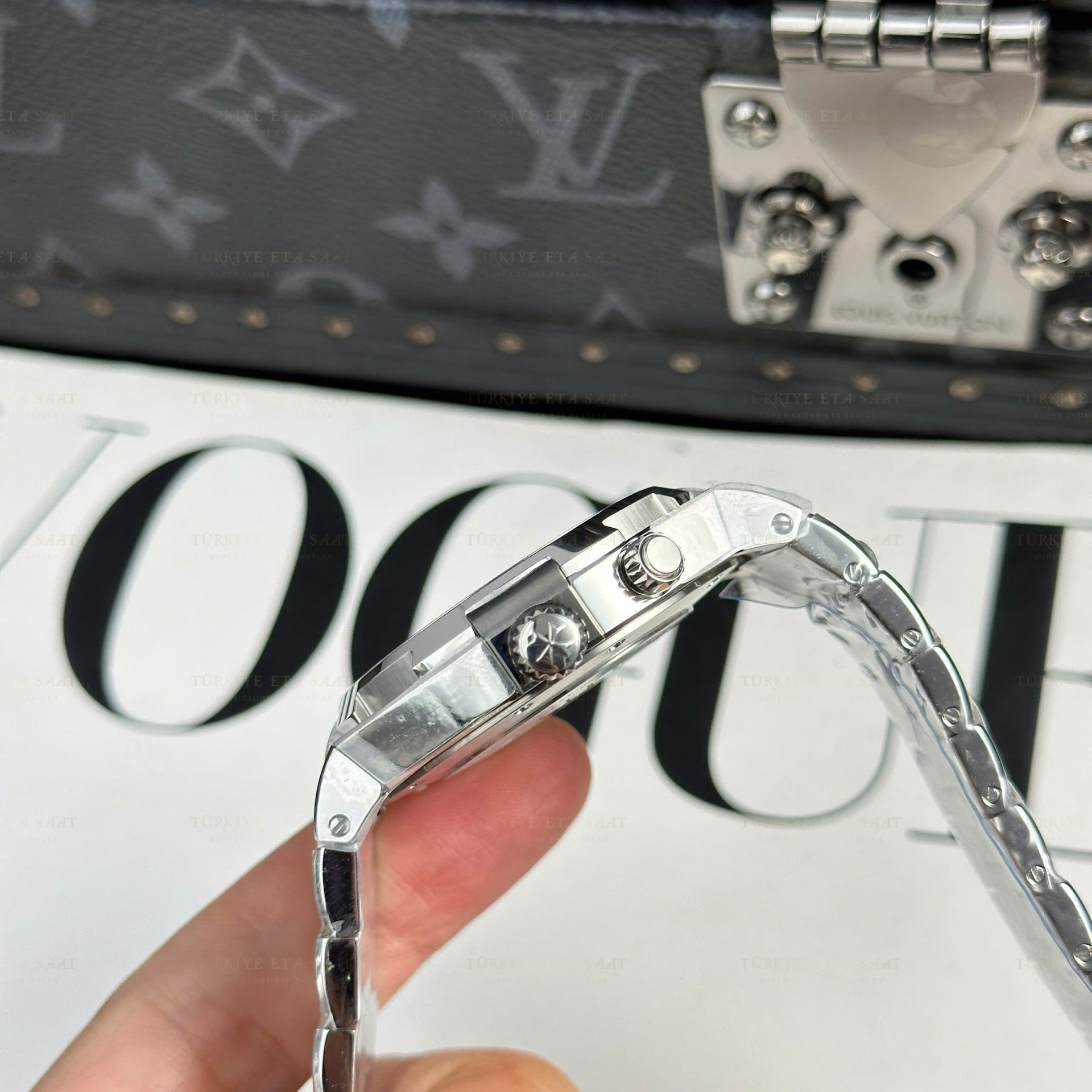 Paslanmaz çelik entegre bilezik, hem estetik hem de konfor açısından üst düzey bir deneyim sunar. İnce taşlama ve cilalama geçişleri, 9F Factory’nin üretim kalitesini ortaya koyar.